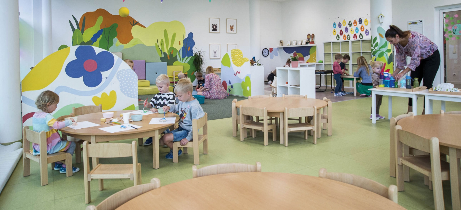 Za dveřmi dětské skupiny Korálky se střídá smích s anglickými říkankami a zvuky dětských her.