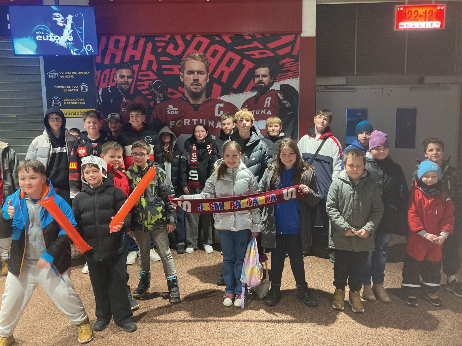 V neděli 1. února se žáci a pedagogové FZŠ Trávníčkova společně zúčastnili speciálního hokejového utkání HC Sparta Praha proti HC Motor České Budějovice, které se konalo ve spolupráci s městskou částí Praha 13 v rámci dlouhodobých projektů zaměřených na podporu aktivního trávení volného času dětí a mládeže. Do O2 areny vyrazilo přibližně 250 účastníků z řad žáků i zaměstnanců školy, kteří vytvořili skvělou fandící atmosféru. Kromě napínavého zápasu čekalo na žáky i několik nezapomenutelných zážitků. Mohli se setkat s oštěpařskou legendou Bárou Špotákovou, vyfotit se s maskotem Sparty, a dokonce se jednomu ze žáků podařilo získat sparťanské tričko. Naše výprava fandila až do poslední minuty a radost byla o to větší, když Sparta Praha nakonec zvítězila. Společná návštěva utkání byla pro všechny příjemným sportovním zážitkem a hezkou tečkou za víkendem.