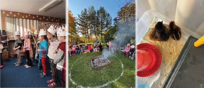 • Děti jsou rozděleny do tříd podle věku • pravidelný pobyt venku, vycházky do Prokopského údolí • nabízíme kroužek keramiky, máme keramickou dílnu i pec, dále kroužek seznamování s AJ, zajišťujeme logopedickou péči • jsme zapojeni do projektu „cvičíme se SOKOLEM“ • děti mají možnost pracovat a plnit úkoly na interaktivní televizi nebo tabuli • v zimních měsících pravidelné saunování ve vlastní sauně v objektu MŠ • akce jako je Mikuláš v MŠ, Masopust, Líhnutí kuřátek v MŠ, líhnutí motýlů a pak vypouštění do přírody, škola v přírodě, Zahradní slavnost a loučení s předškoláky, hudební a divadelní představení v MŠ, opékání buřtů, podzimní pečení brambor, předvánoční setkání s rodiči, Vítání jara a další... • vánoční a skupinové focení na konci roku, školní celodenní výlet.