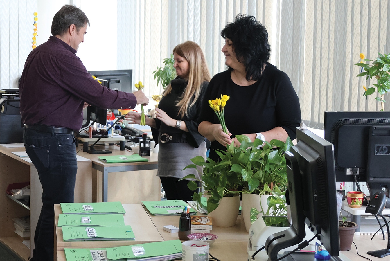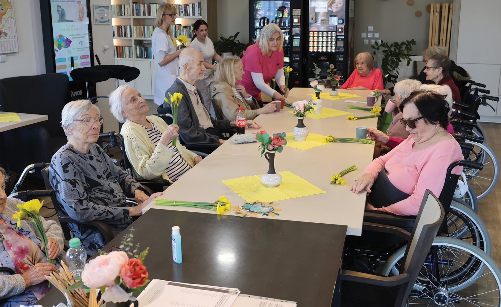 Kytičkou následně potěšil všechny dámy v Domově třetího věku Zity Kabátové a také zaměstnankyně radnice Prahy 13.
