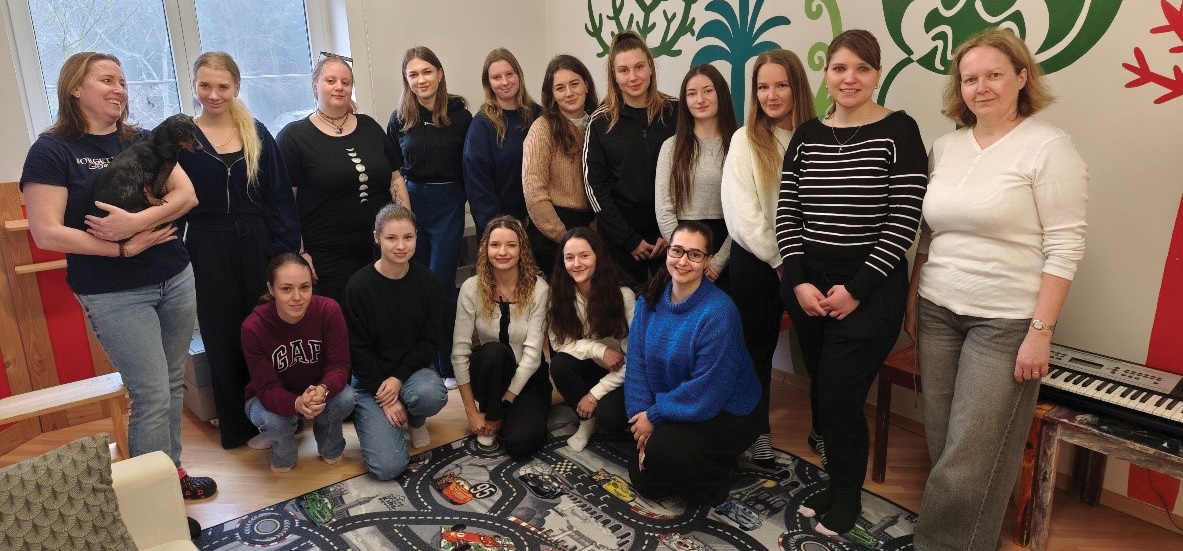 V letošním roce nás kromě individuální praxe potkala jedna zcela nová zkušenost. Naši školku navštívila začátkem března skupina čtrnácti studentek ze Soukromé vyšší odborné školy sociální v Jihlavě. Bylo nám ctí předvést návštěvě náš dopolední vzdělávací blok jak v češtině, tak v angličtině. Množství otázek a dotazů studentek jen potvrdilo upřímný zájem o nové trendy v předškolním vzdělávání.