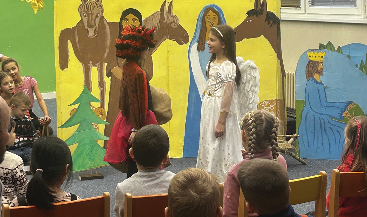 V prvním prosincovém týdnu jsme v ZŠ Klausova opět s radostí uvítali děti z okolních mateřských škol. Připravili jsme si pro ně interaktivní povídání o adventu, během kterého se dozvěděly spoustu zajímavostí o vánočních zvycích a tradicích. Atmosféru doplnili jejich jen o málo starší kamarádi, kteří dětem zazpívali vánoční písně a koledy. Nechyběla ani divadelní pohádka o tom, že někdo ukradl Vánoce. Děti se však brzy dozvěděly, že opravdové kouzlo Vánoc se neskrývá v dárcích pod stromečkem, ale v laskavosti, přátelství a otevřeném srdci. Budoucí prvňáčci si z návštěvy odnášeli nejen úsměvy, ale také drobné dárky - vánoční placku, kouzelné oříšky, pracovní listy a papírový betlém. Ten jim bude v mateřské škole připomínat poselství z pohádky a kouzelnou adventní atmosféru, kterou jsme společně prožili.