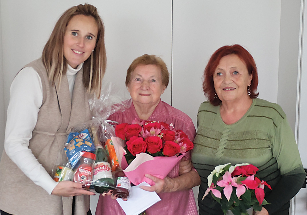Věk je opravdu jen číslo. Dokazuje to fotografie naší oslavenkyně Marie Krejčové, která oslavila krásných 96 let. Popřát jí přišla za MČ Praha 13 Nikol Porazilová s krásnou kyticí a balíčkem od pana starosty. Za celý Klub II přeji hlavně zdraví a tu vitalitu, kterou pořád má.