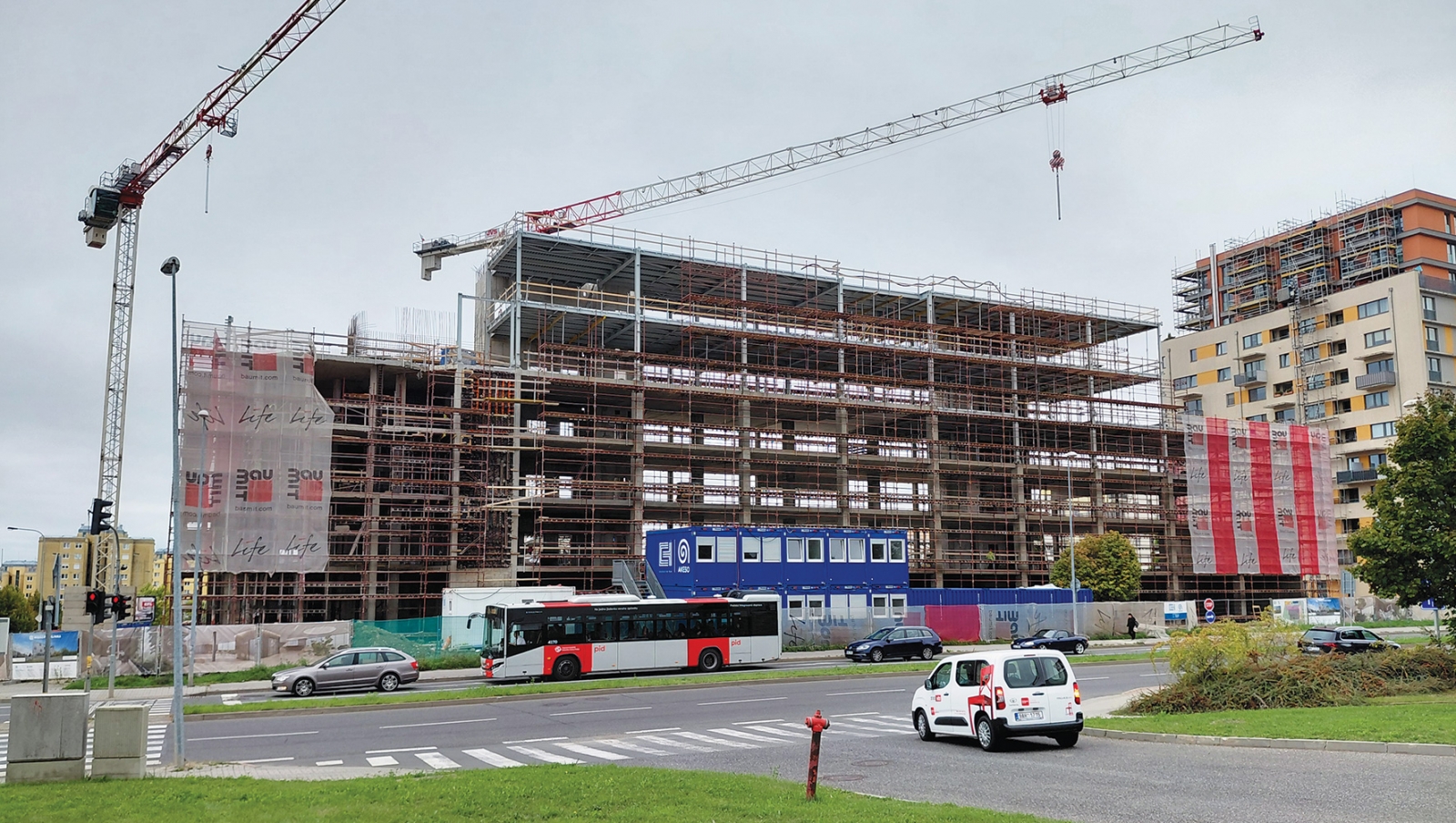 Velká stavba na křižovatce ulic Pod hranicí a Nárožní