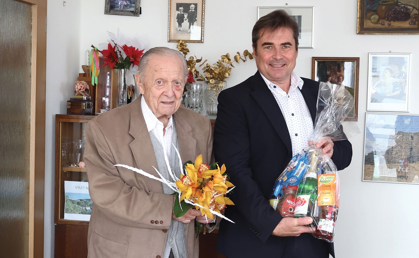 Oslavenci k jeho narozeninám přišel popřát i starosta městské části David Vodrážka.