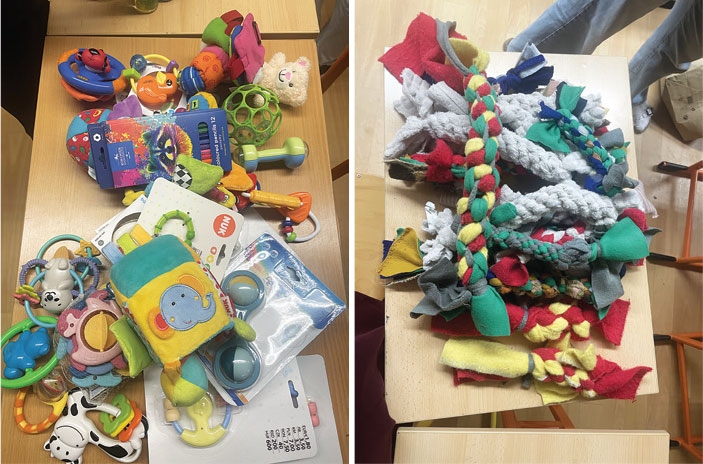 Parlament FZŠ prof. Otokara Chlupa každoročně organizuje několik charitativních akcí. Na konci loňského to byla opět vánoční sbírka pro Tým podpůrné a paliativní péče pro děti FN Motol a nově sbírka starých dek. Pro Motol se sbírala Kinder vajíčka, bublifuky a hračky pro miminka. Děti a dospělí z naší školy dokázali, že mají laskavá srdce - sešlo se přes 250 Kinder vajíček, asi 130 bublifuků, chrastítka, lízátka, pastelky a jiné drobnosti. Některé dárky byly opatřeny osobním vzkazem. Nasbírané deky jsme nastříhali a společně s dobrovolníky z prvního stupně z nich podle návodu vyrobili hračky, které budou pomáhat s výcvikem budoucích vodicích pejsků. Hraček máme plnou bednu, výroba nás bavila. V lednu jsme je předali středisku a doufáme, že se štěňátkům líbí.